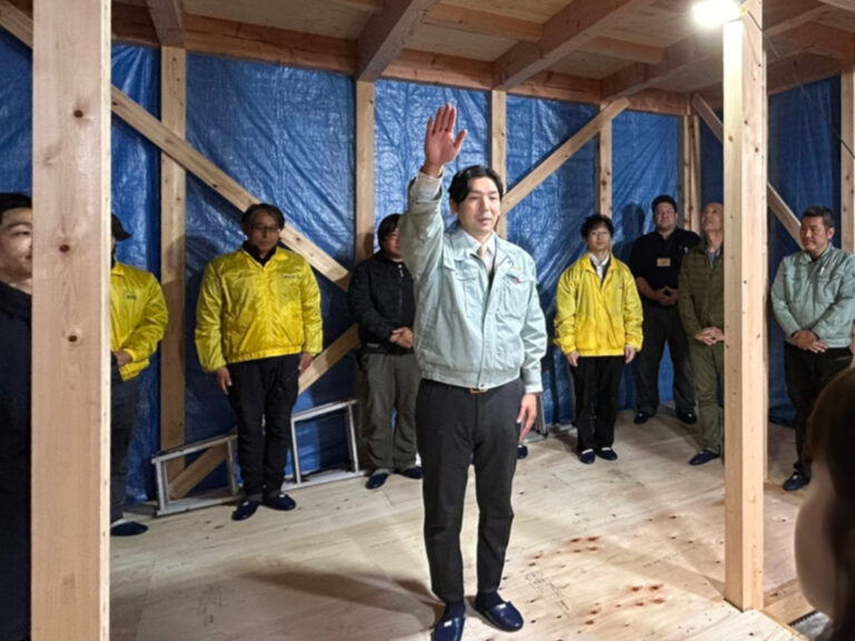 先日12月20日、桃山町の現場で建方を行いました。 雨天となりましたが大降りになることもなく、無事終えることができました。 〈大府市桃山町 F様邸 新築注文住宅〉 当日までに基礎工事は完了、プレカット済みの木材を現場に運 […]