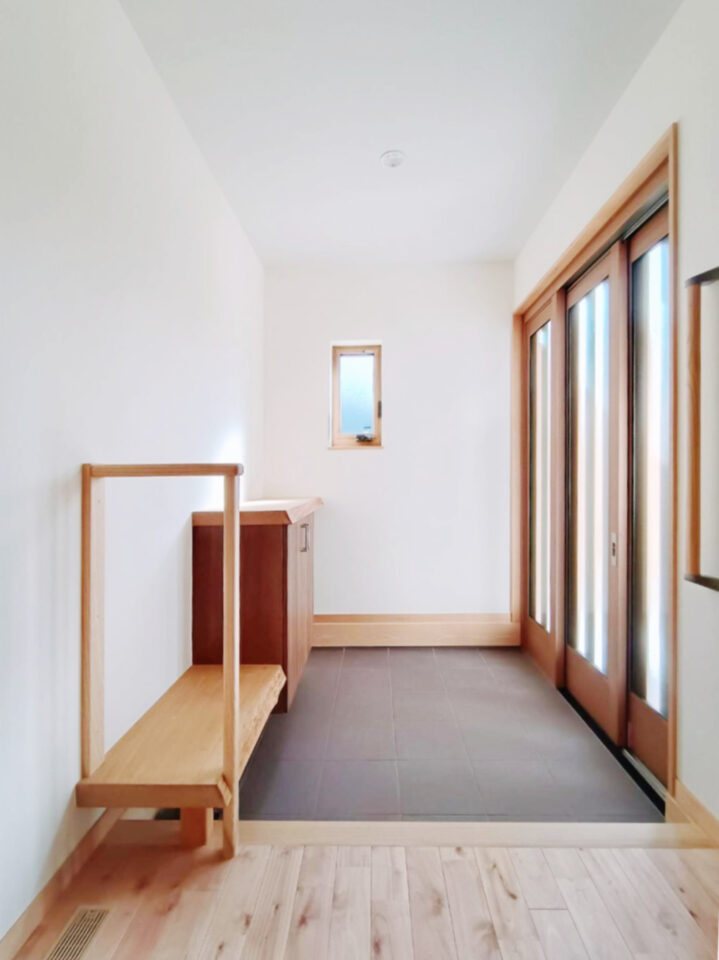 スロープは玄関だけでなく勝手口側にも設けました。2階がないためどの部屋もフラットに行き来できます。