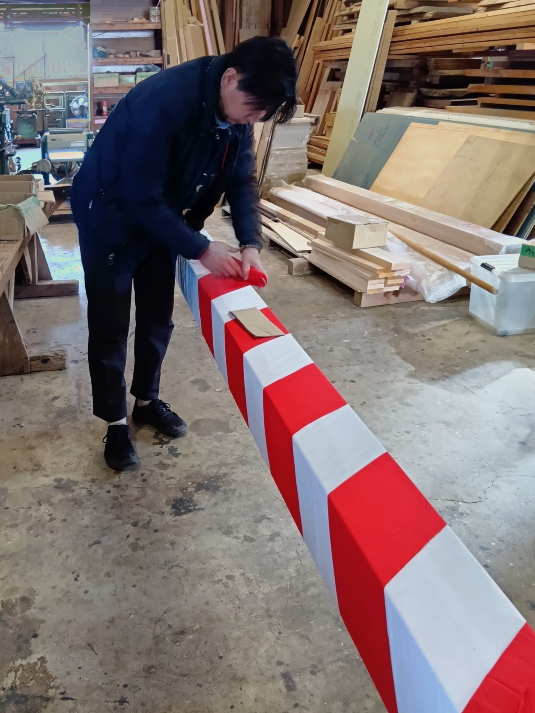 令和8年最初の紅白巻きをしました。1月13日に建方を行います。
