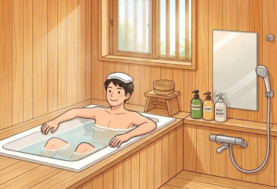 総ヒノキ風呂はなかなかコスト的にも難しいですが、浴室の内壁面だけでもヒノキを使うなんて最高です。