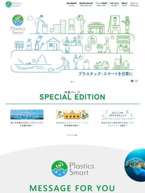 「プラスマ」とは、プラスチック・スマートを短くした造語で、環境省が特設ウェブサイトを展開しています。
