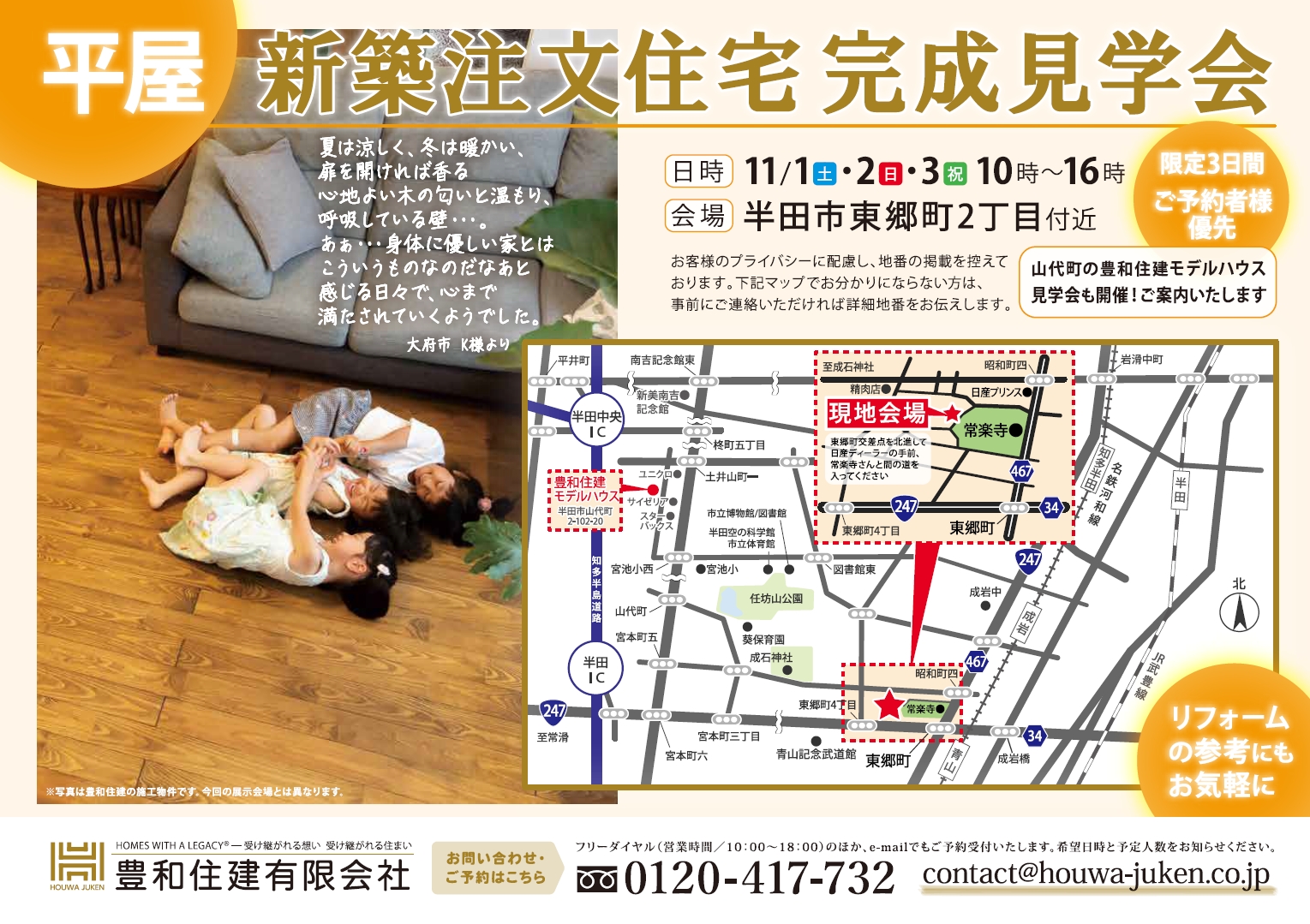 同日、同じく半田市山代町の豊和住建モデルハウスでも見学会を行います。