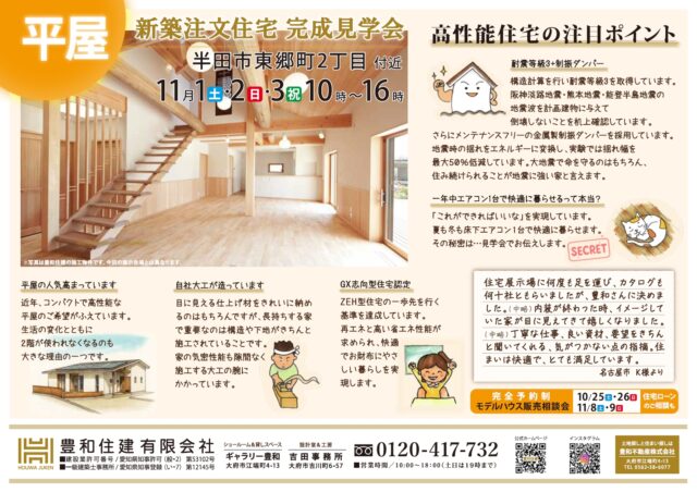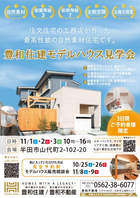 同日、同じく半田市山代町の豊和住建モデルハウスでも見学会を行います。