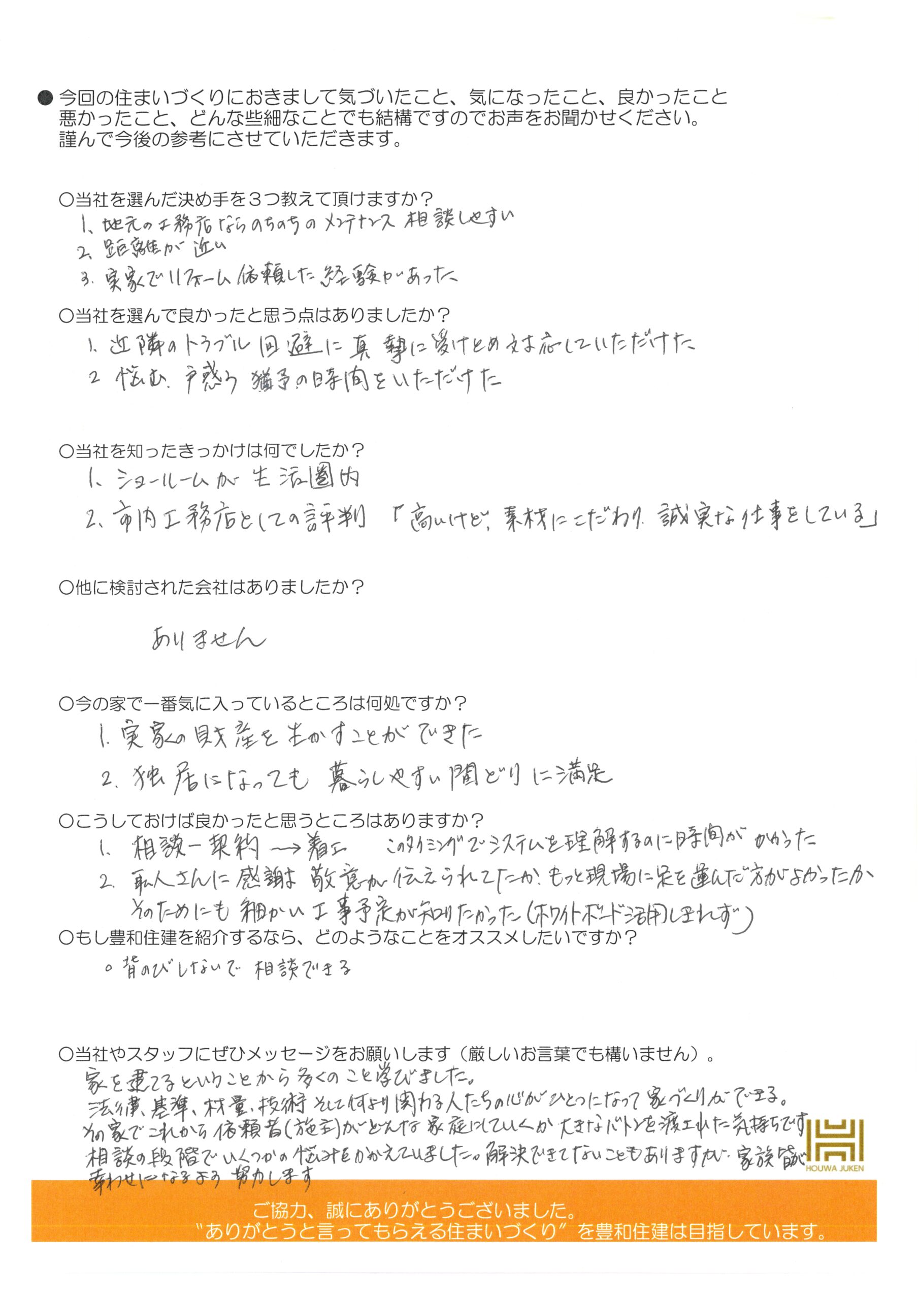 ・ご近所さんとの間に立って対応してくださった監督、棟梁のやさしさ・強さに心包まれました。