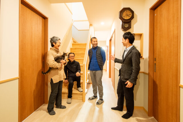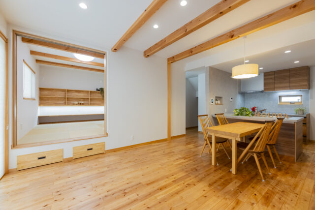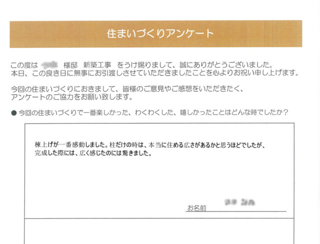 棟上げの時は柱だらけに驚き。完成したら広く感じ、また驚きました